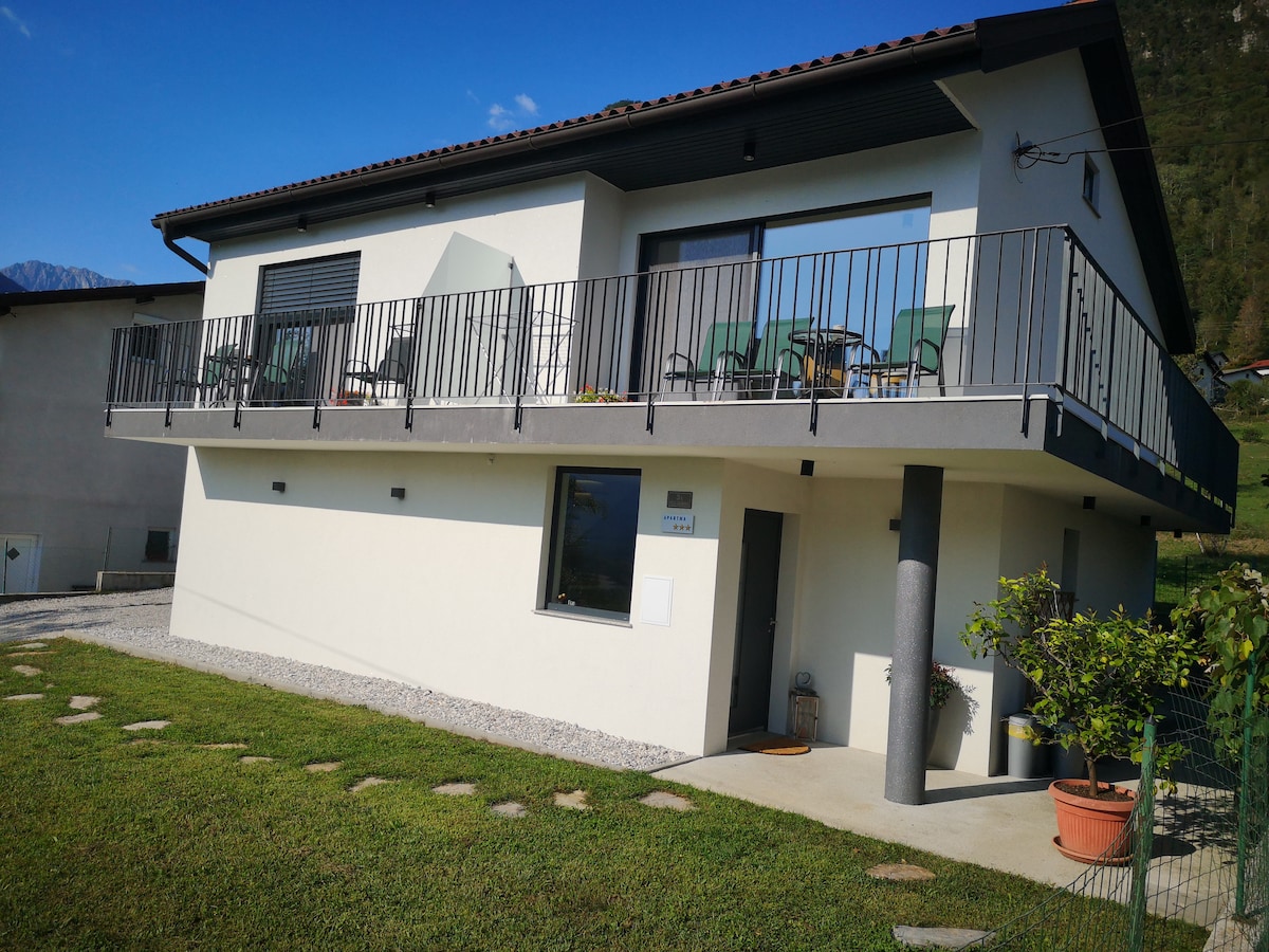 Id-dar tagħna tinsab f' nofs il-mergħa fil-bidu tal-villaġġ żgħir Modrejce, ftit passi 'l bogħod mil-lag. L-appartament, li huwa separat mill-appartament tagħna, jinsab fuq in-naħa tax-xellug tad-dar u jista' jilqa' sa 5 persuni. Għandu dak kollu li għandek bżonn għal vaganza perfetta! Aħna familja ta' 5 persuni - kulħadd b' interessi differenti, iżda kollha marbuta man-natura sabiħa tagħna. Għalhekk nistgħu ngħinuk issib xi ħaġa li tħobb - fid-dar tagħna jew fil-Wied ta' Soča!