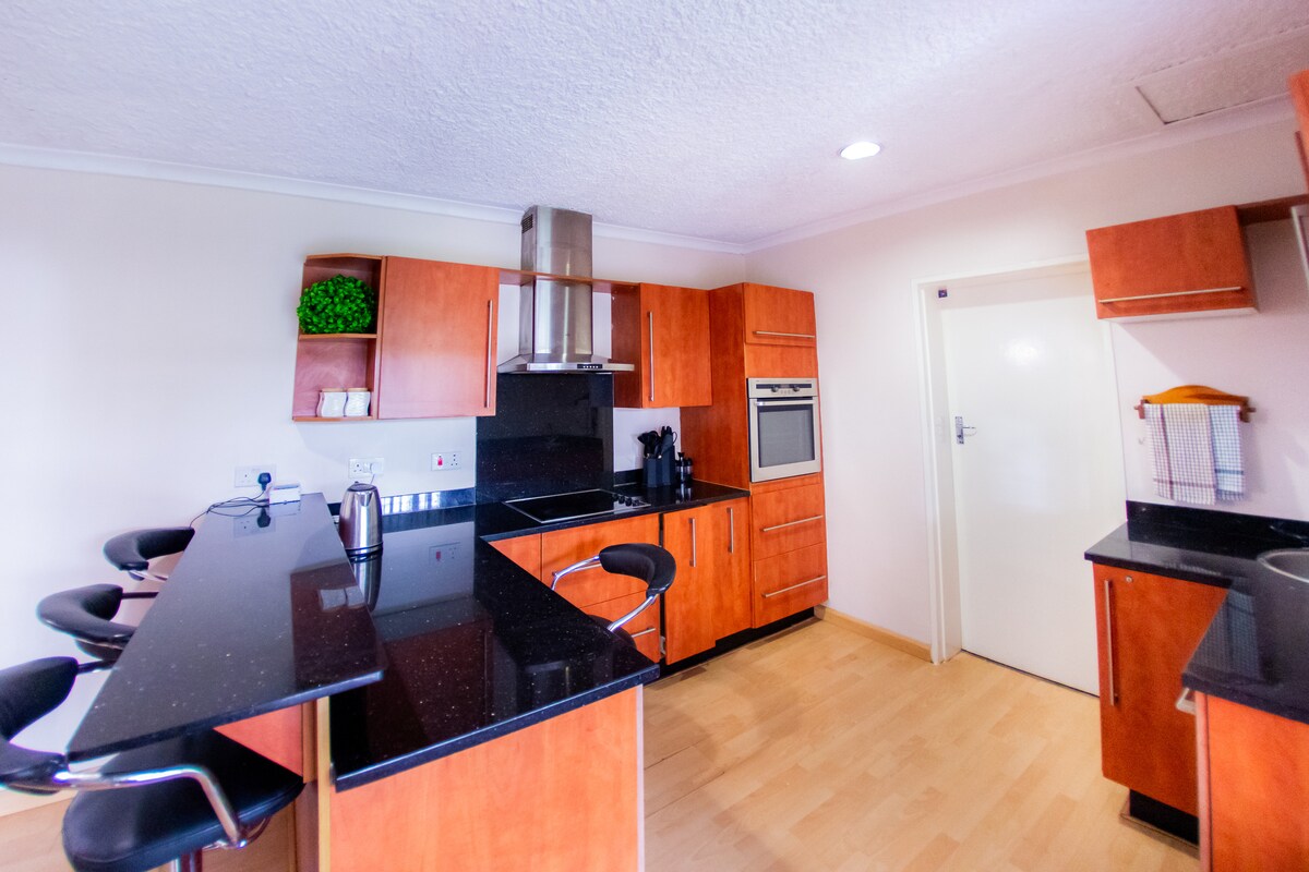 Appartament spazjuż, komdu u nadif li jinsab f' kumpless magħluq sigur b' parkeġġ ibbukkjat. Ilma tal-borehole li jaħdem 24 siegħa b' provvista tal-elettriku affidabbli ta' 99.9%. DSTV għall-aħbarijiet u d-divertiment tiegħek flimkien ma' High Speed Fibroniks WiFi adattat għax-xogħol u għall-istreaming tal-vidjows. Tinsab fi żmien 10 minuti mixi 'l bogħod miċ-Ċentru tal-Belt. Is-supermarket Spar huwa ġebel li jintrema 'l bogħod. Il-kmamar ta' Emerġenza jinsabu warajhom.