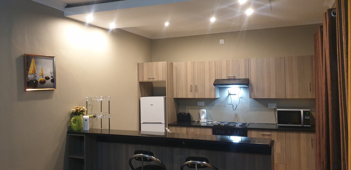 Appartament kompletament mgħammar b' 2 ikmamar tas-sodda li jinsab 16 km 'il bogħod mill-Ajruport Internazzjonali ta' Kenneth Kaunda. Dan joffri kumdità u ndafa, bil-kumditajiet essenzjali kollha inklużi l-WiFi bla ħlas, it-TV, ir-riżerva tax-xemx għall-qtugħ tal-elettriku u żona ta' bilqiegħda fuq barra bil-ħaxix biex tirrilassa. Tinsab f' kumpless żgħir miżmum sew bi lqugħ bil-lejl, toffri kemm konvenjenza kif ukoll sigurtà.