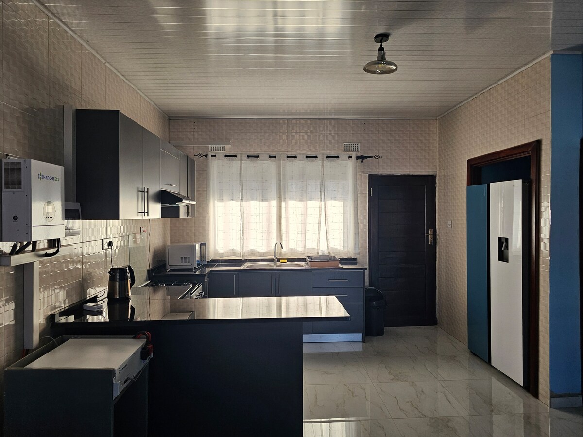 (SISTEMA TA' RIŻERVA SOLARI fuq IL-PROPJETÀ) Merħba fil-villa lussuża tagħna b' 2 kmamar tas-sodda u 2 kmamar tal-banju b' master en-suite ġewwa Foxdale Residential, komunità magħluqa sigura. Gawdi salott eleganti b' Smart TV ta' 50 pulzier, wifi veloċi tal-5G MTN u kċina mgħammra b' kollox. Irrilassa fil-gazzebo eleganti tal-bitħa u ammira biċċiet tal-arti sbieħ tul iż-żmien kollu. Gawdi t-tindif ta' kuljum tagħna sitt darbiet fil-ġimgħa. Din id-dar, li tinsab qrib ċentri ewlenin, toffri kumdità u konvenjenza bla tqabbil