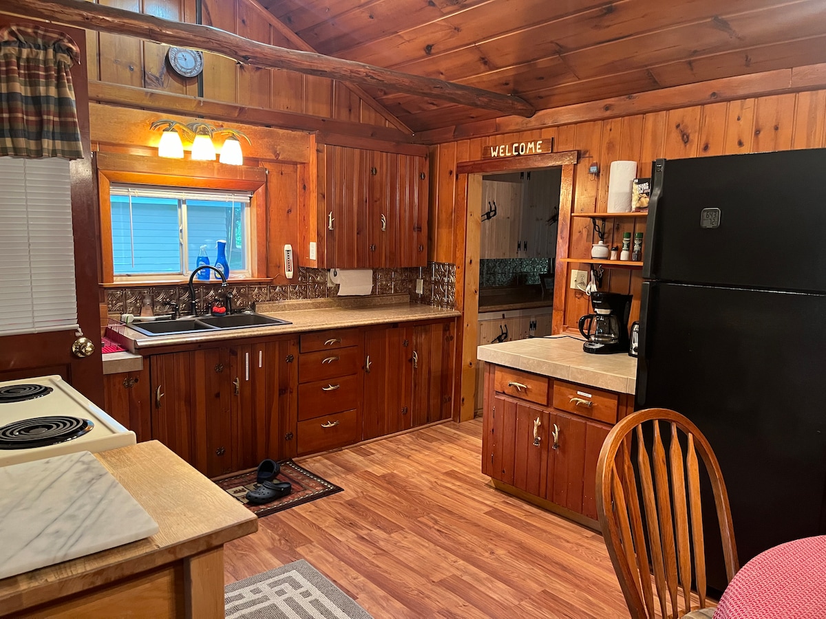 Gawdi din il-kabina komda fiż-żona tal-Foresta Nazzjonali ta 'Huron. Jinsabu tul it-triq mix-Xmara AuSable sabiħa! Xmara mill-aqwa għall-kayaking (4 inklużi), Canoeing (1 inkluż) u sajd tat-troti magħruf. Ejja u gawdi l-mogħdijiet lokali kollha GĦALL-HIKING, ROTI TAL-ĦMIEĠ, ATV 'S u SNOWMOBILING! Jew sempliċement poġġi bilqiegħda u rrilassa madwar nar tal-kamp! Il-kabina hija mgħammra kompletament bil-bjankerija tas-sodda, xugamani, ċraret tal-platti eċċ. u kċina u grill tal-gass mgħammra b 'mod sħiħ. Hemm logħob fuq barra u fuq ġewwa. DVD u films