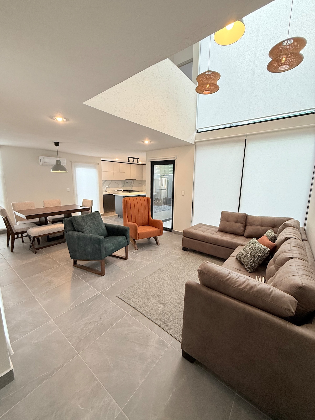 💵 Facturación Disponible 💵 🌿 Refugio con estilo🌿 🛏️ 3 Recámaras | 3 Baños Completos. ⭐Recámara principal Cama King Size ❄️A/C❄️baño privado TV ✨Segunda recámara Dos camas individuales y baño privado 🌙Recámara en planta baja Cama matrimonial 👶 Cuna disponible bajo solicitud 🍴 Cocina: Totalmente equipada para tu comodidad 🎥 Sala de TV: Con acceso a streaming 🌿 Patio Trasero: Tranquilo y acogedor para disfrutar Amenidades 🏊 Alberca 💻 Área Cowork 🎠 Área de juegos para niños