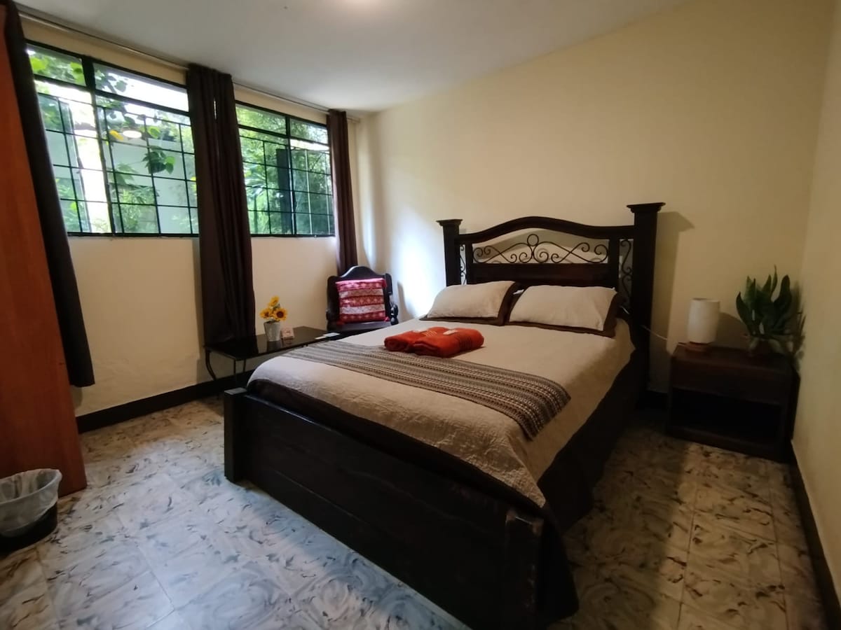 Comfy Stay jilqgħek fiż-żona 9 ta' Casa Blanca, dar ta' Airbnb b' 5 kmamar privati, żoni komuni spazjużi u 3 spazji għall-parkeġġ. Post ċentrali fejn toqgħod komplut b' daħla indipendenti. Kafè, ilma u WIFI BLA ĦLAS. IGSS, Parque de la Industria u s-suq ta 'La Terminal ftit blokki' l bogħod. Żoni 4 u 10, 5 minuti. L-Ajruport ta' La Aurora 10 minuti. Kolazzjon magħmul id-dar disponibbli u kiri ta 'magna tal-ħasil u dryer. NOTA: Parkeġġ: kejl massimu "4.63 mts" (Eżempju: Toyota Rav 4)