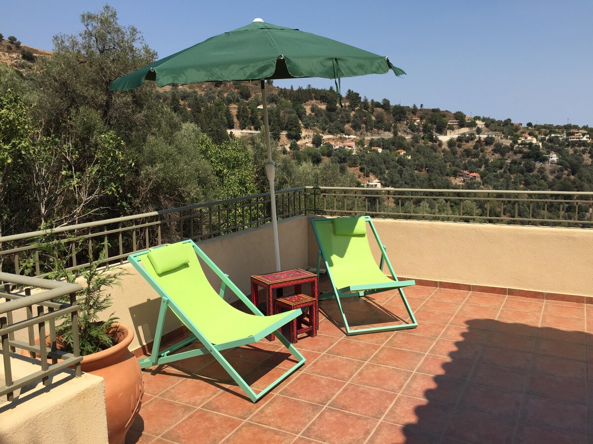 Huwa appartament ta '85 metru kwadru b' veduta u disinn impressjonanti f 'ambjent fejn l-uniku storbju huwa l-għasafar tal-foresta. Nixtiequ ninfurmawk li l-appartament tagħna m 'GĦANDUX KONDIZZJONATURI TAL-ARJA u tagħmir effiċjenti fl-enerġija. Hemm parkeġġ tal-karozzi fil 10 metru bogħod. Fil-mixja 15 minuta inti fis-suq super lidl u hemm suq mini fil 300 meter bogħod.Ukoll il-famuż caffe koukouvaya huwa fil 10 minuti fuq il-mixi.q